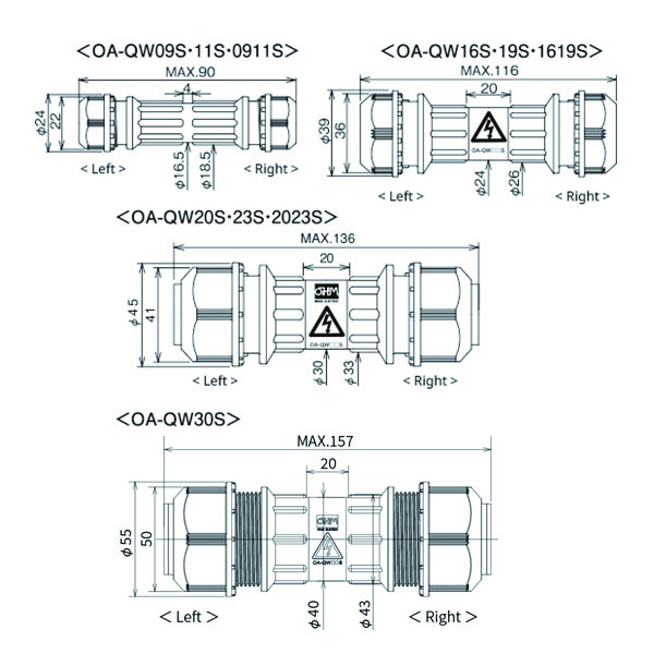 | OA-QW20SE | - | Ø13 - 20③ | Ø13 - 20③ | M8 | 115g | ||
